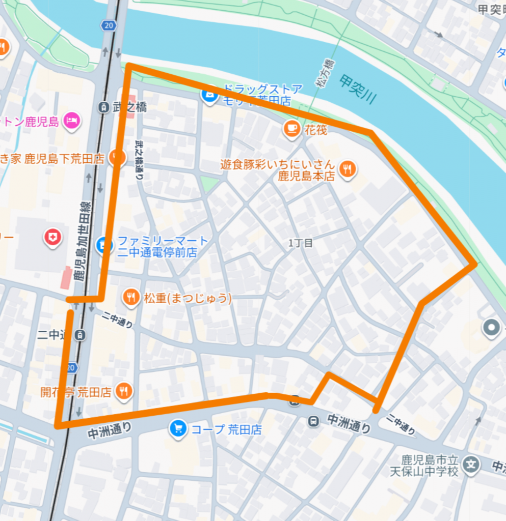 甲突川沿いを歩いている途中、コーギーの散歩をしているご夫婦から