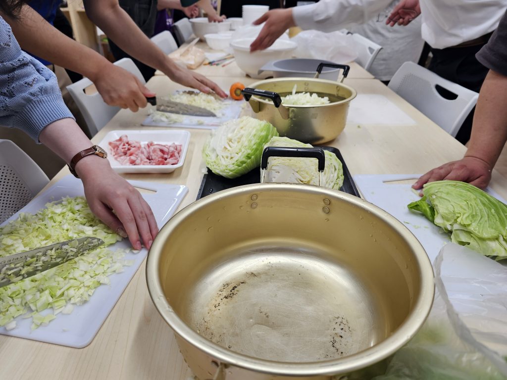 そのあとは、調理プログラムでキャベツもりもりおこのみ焼きを作りました。みんなおなかいっぱいになるまでキャベツを食べて食べて食べまくりました。