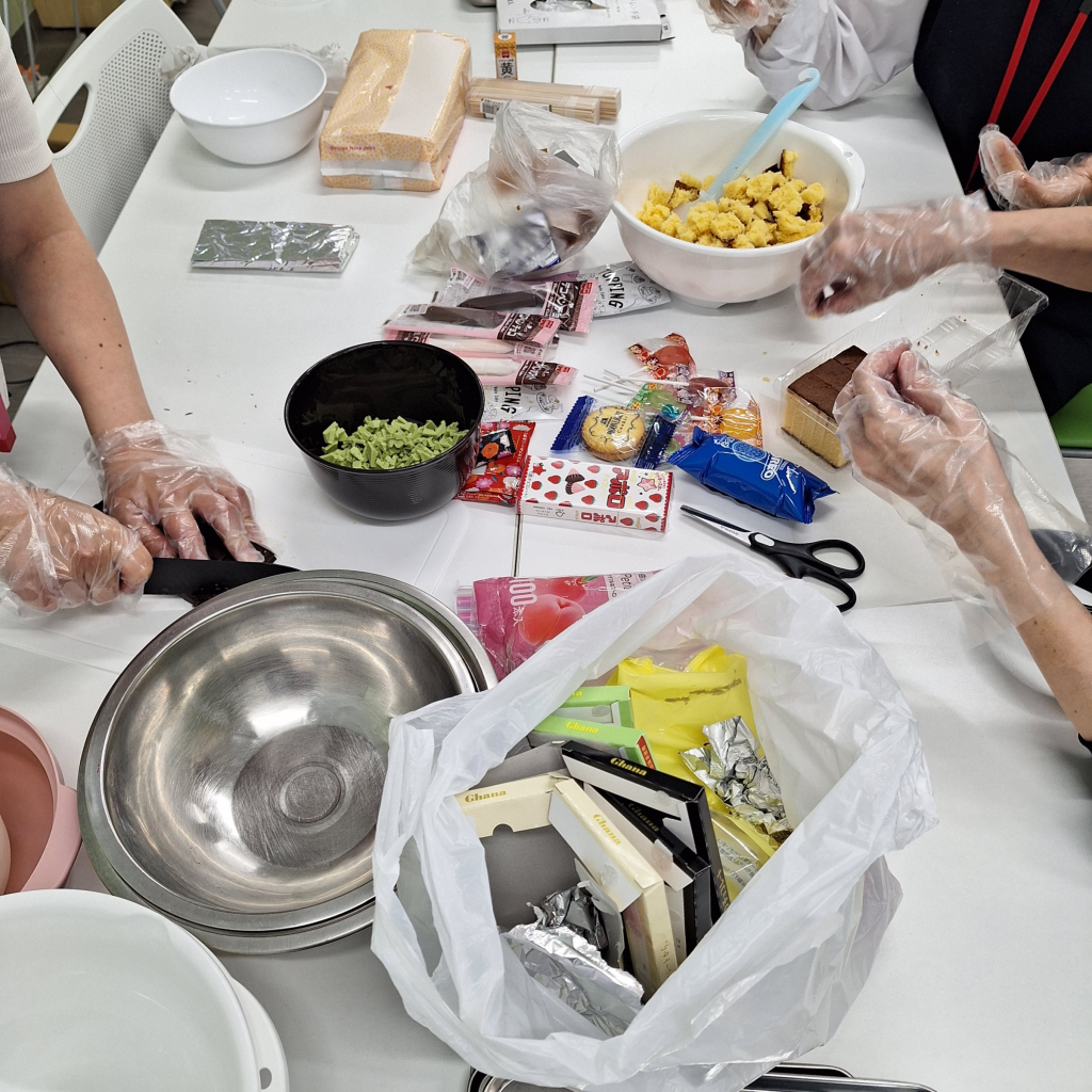 皆さんでレシピを確認し、話し合いながら協力してお菓子作りを進めました🎽