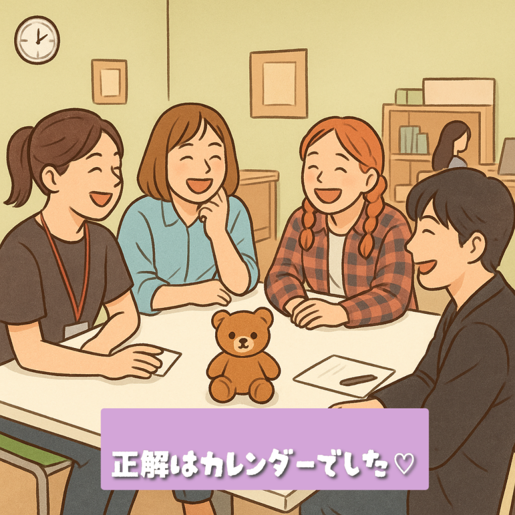 順番にくじ引きを引いてお題を出し、わかった方は挙手で回答しました✋