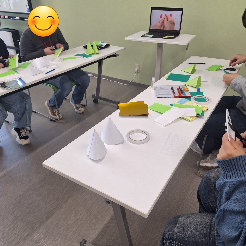 作成手順を確認後、集中して作業を進め、より良いアイデアを発見したときには皆さんでアイデアを出し合い、素敵なツリーが完成しました👏🎄