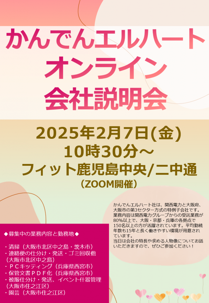 【2025年2月7日】かんでんエルハートの会社説明会が開催されます!