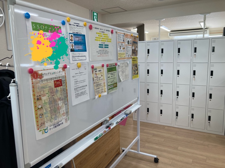 そこで、ティオ鹿児島中央では大きなホワイトボードを使って、お知らせや周知を行っています。