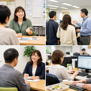 実際に来所して頂き、事業所の雰囲気を⾒てもらったり、お話を伺わせて頂きます。オンラインも可能です。