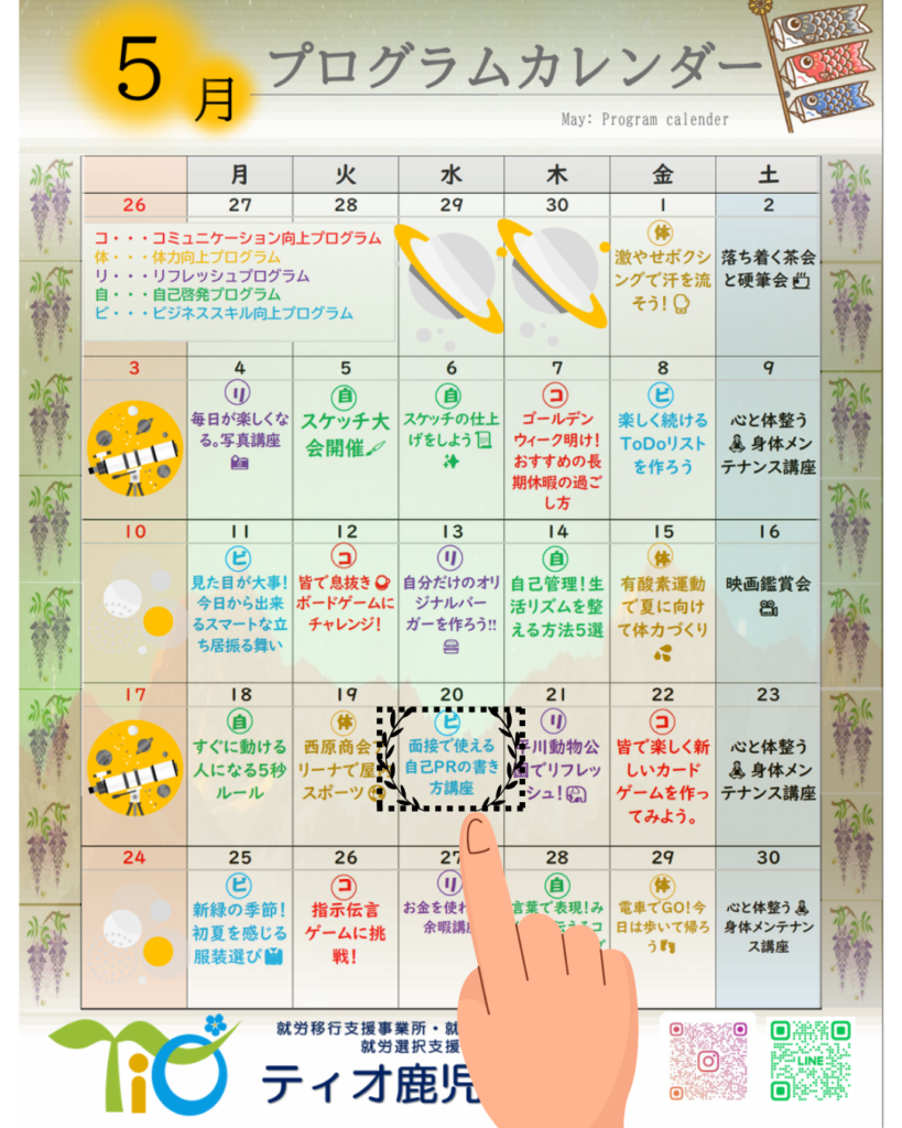 就労移行支援事業所ティオ鹿児島中央では、皆さんが無理なく、かつ楽しみながら就労へのステップを上れるよう、多種多様なプログラムを用意しています!!