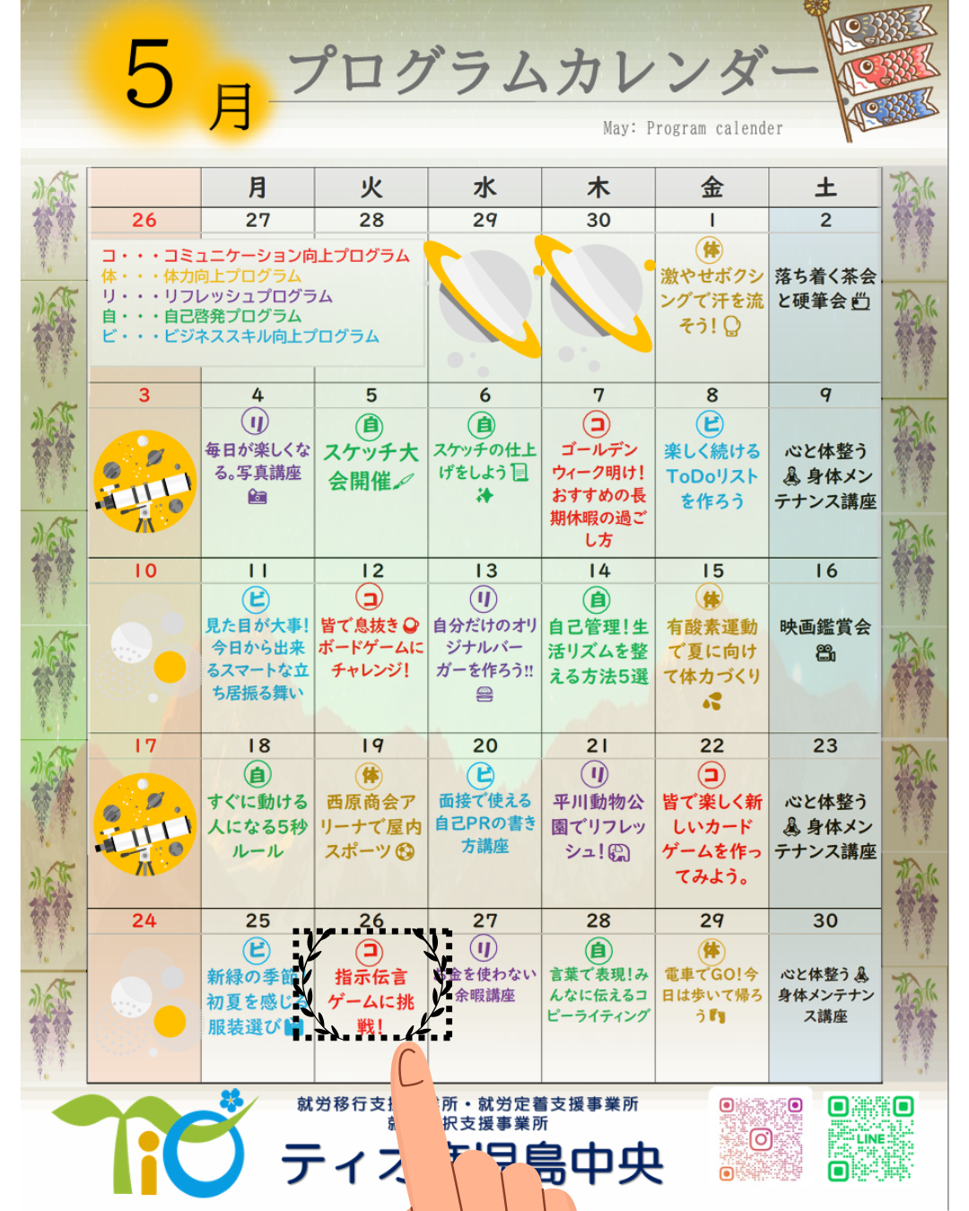 おすすめ:【コミュニケーション向上プログラム】(例:5/26 指示伝言ゲームに挑戦!)