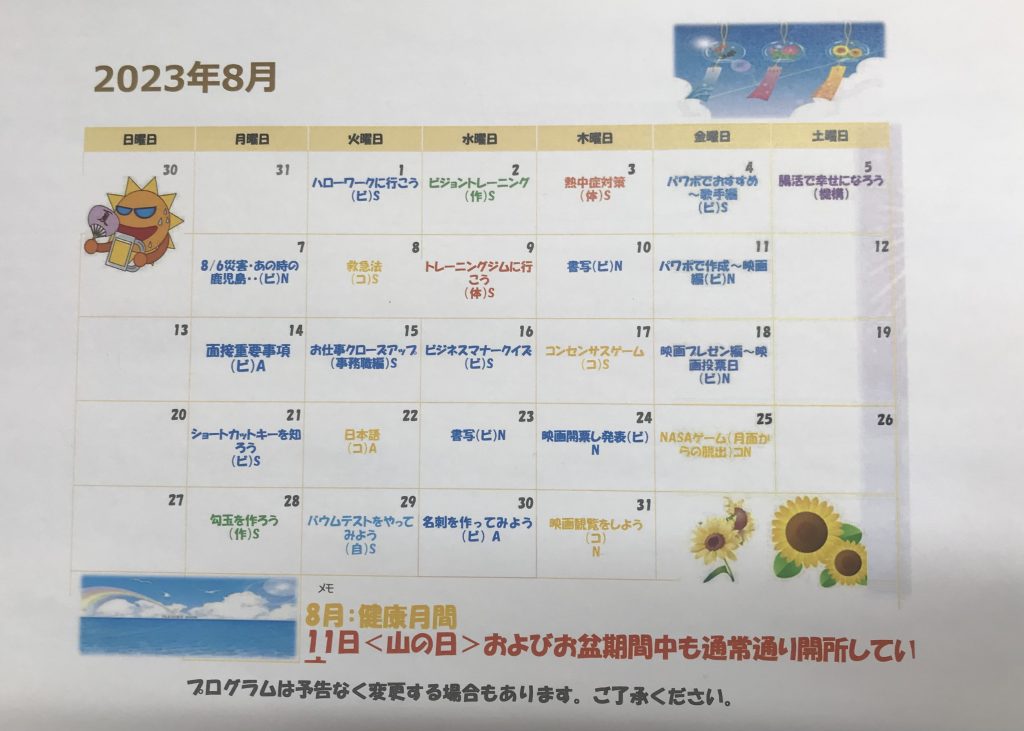 8月も色々なプログラムがございますので気になった方はお気軽にお問い合わせください٩( ‘ω’ )و