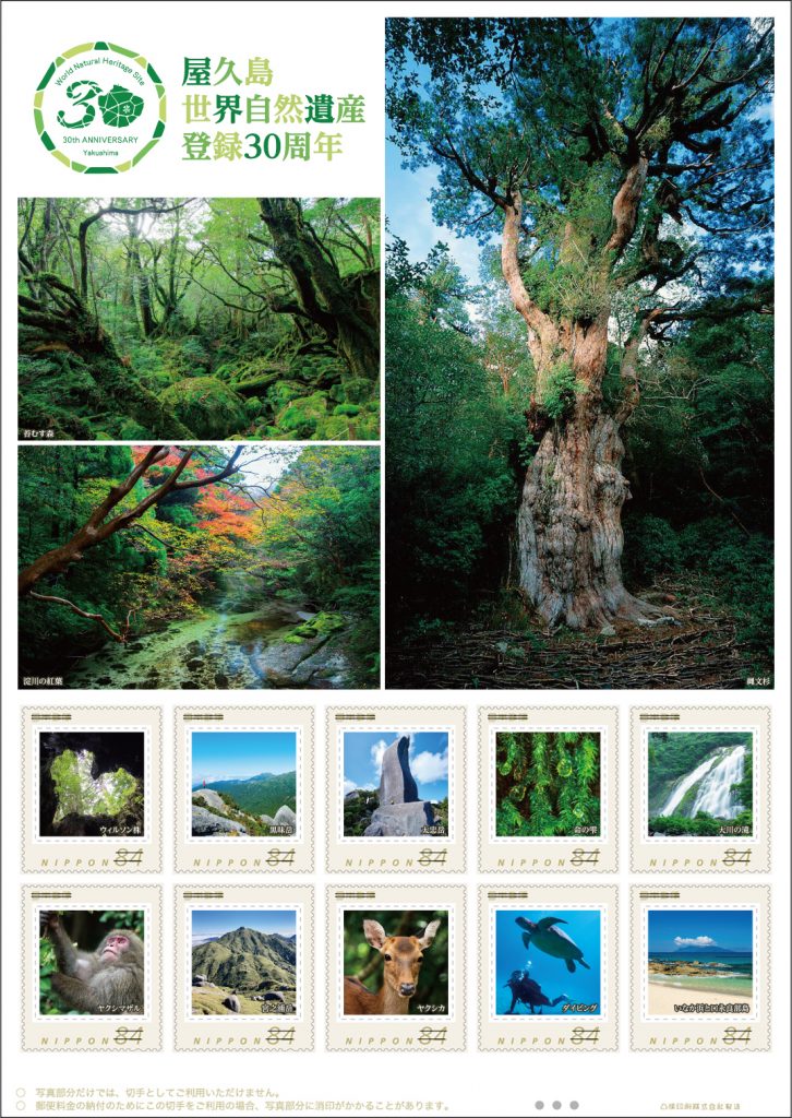 屋久島が、1993年12月に世界自然遺産に登録されてから30年になるのを記念したオリジナルフレームの切手の販売が今日20日から屋久島の郵便局限定で始まったそうです。