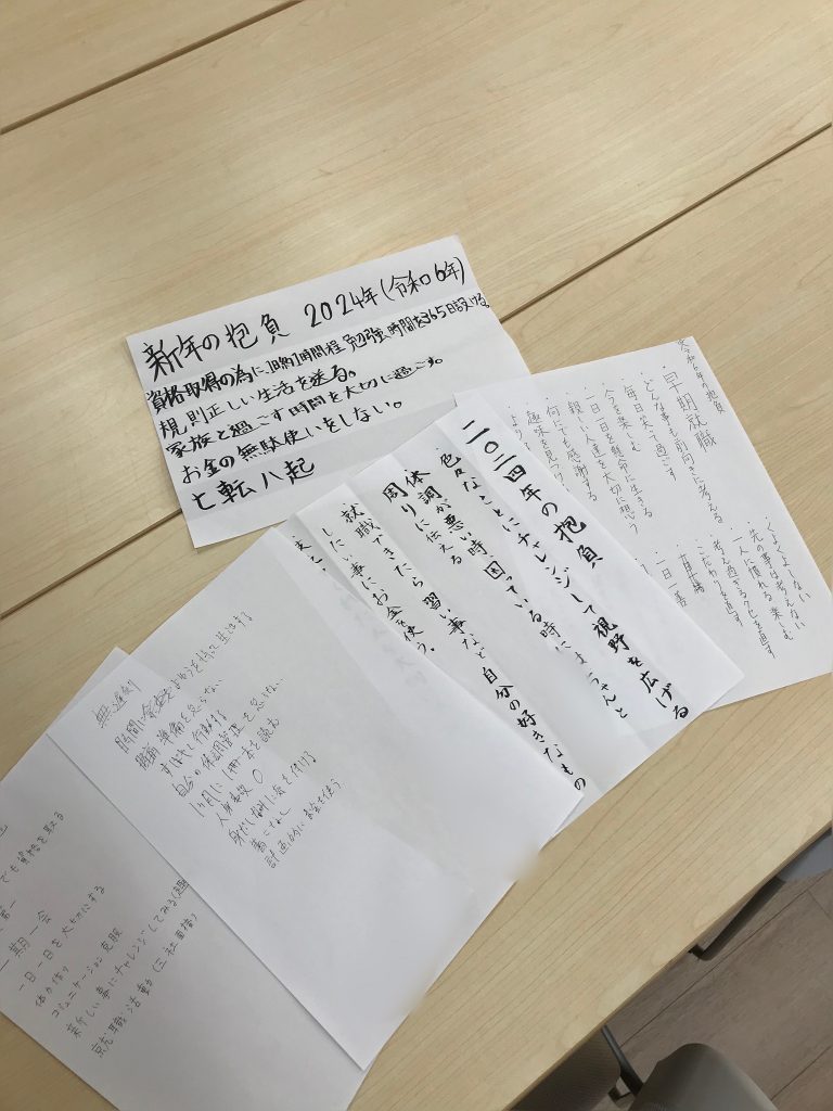 本日はプログラムで」新年の抱負を書いていただきました。