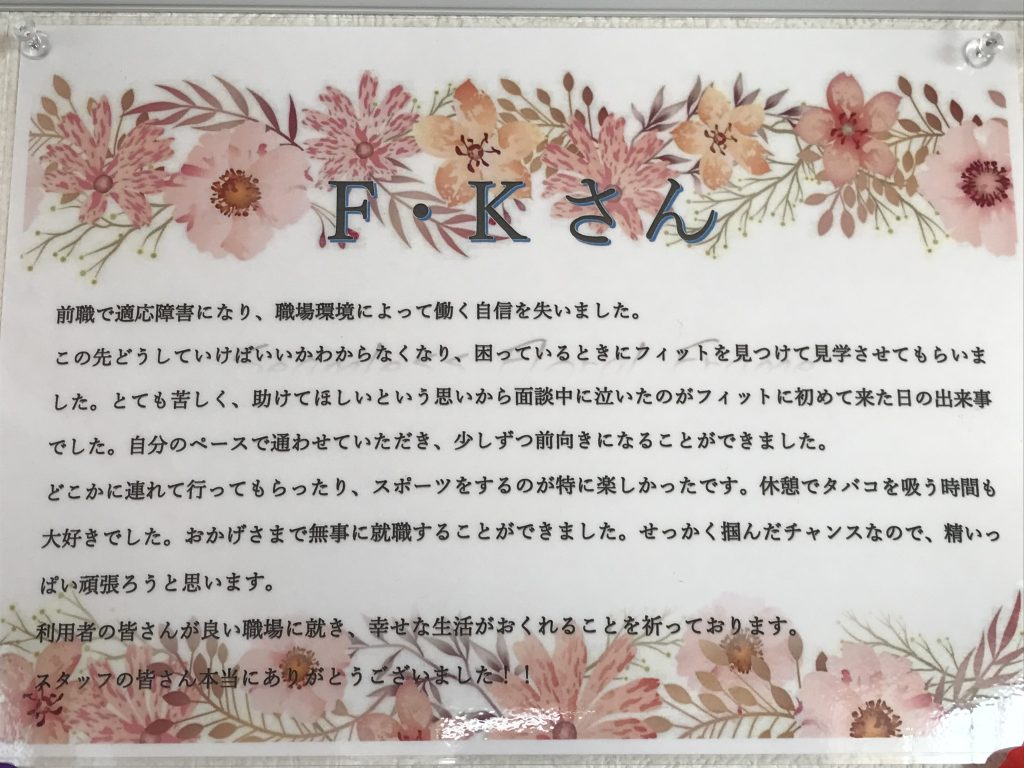 利用者さん達の頑張りの結果、現在5名の方々が就職されました。
