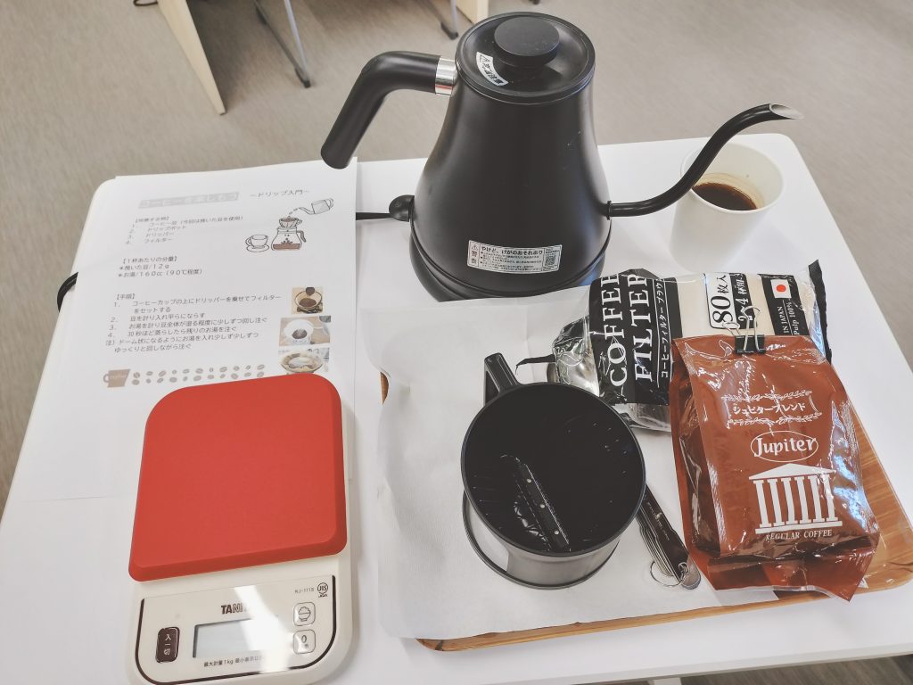 プログラムでは「コーヒーを楽しもう ドリップ入門」という事でハンドドリップを行いました☕