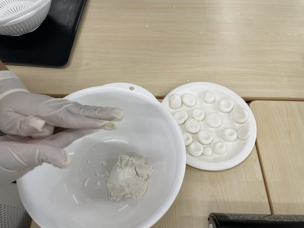 本日のプログラムでは中秋の名月、十五夜を取り上げ、事業所にて月見団子作りに取り組みました。
