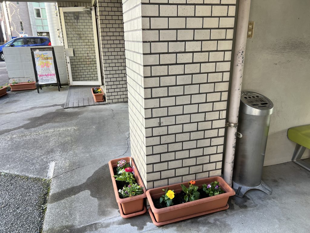 駐車場から事業所の入口にお花があるだけで、温かみと、ふっと微笑みが溢れる瞬間をプレゼントされた気持ちになりました。