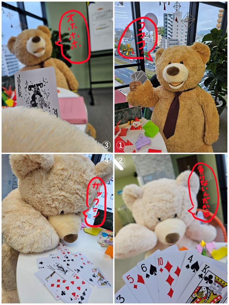 今日はコミュニケーション向上プログラムとして、カードゲームをやりました。