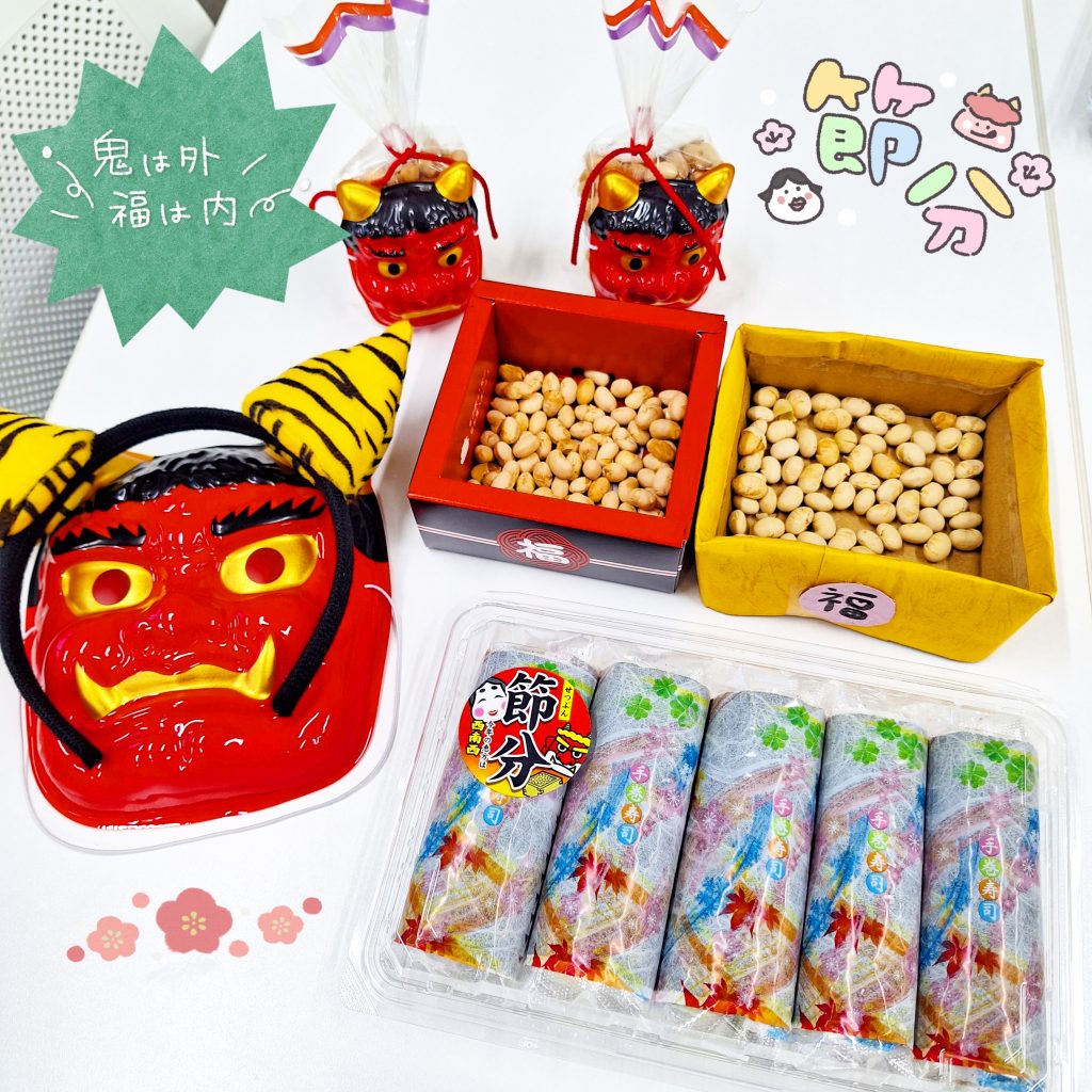 こんにちは!今日から2月ですね☺️フィット鹿児島二中通では『豆まき』を行いました!毎年行うご家庭もあるそうですが、大人になるとなかなか無い機会ですよね👹お面や角を付けて思いっきりまきました🔥豆まきの後は皆さんで西南西を向いて『恵方巻』を食べて良いリフレッシュとなりました♪♪
