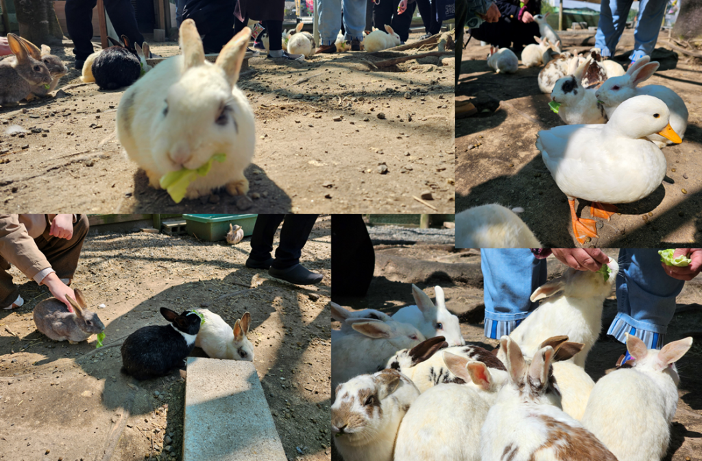 動物とのふれあい広場があり、そこではウサギちゃんにエサをあげることができました♪