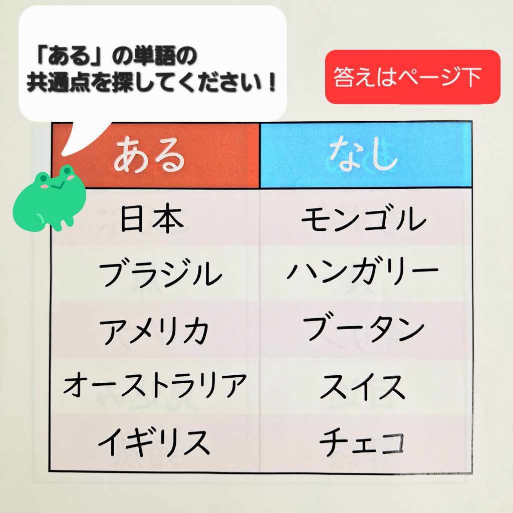 あるなしクイズとは「ある」の方にはあり、「なし」には無いものを探すクイズです🙆♀️一問につき制限時間5分で考え、話し合ったり交代でヒントを出して取り組みました😆