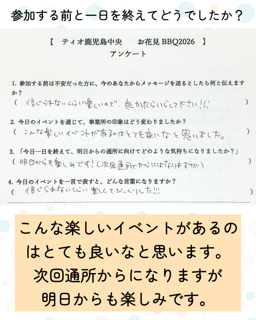 ちょっと棘があるようなブログになってしまいましたが、利用者の皆様が花見とBBQを楽しんでいる時間に、私はポスティングに行っていました。