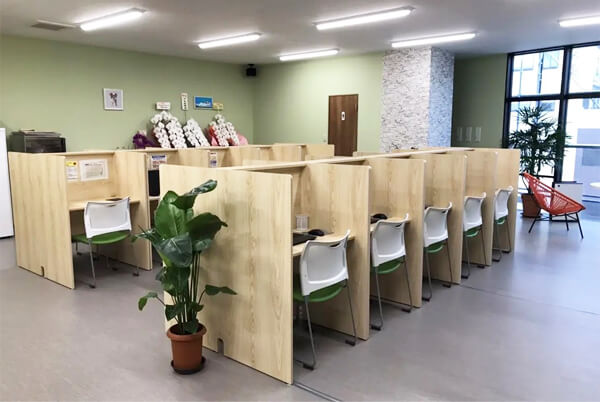個別ブースを活用することで、周囲の刺激を抑え、自分のペースで訓練に取り組める環境を整えています。体調が不安定な時期でも無理なく通所しやすく、集中力や働く感覚を少しずつ取り戻すことにつながります。